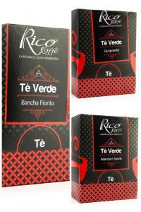 Nella selezione Rico troviamo il Gunpowder (letteralmente “polvere da sparo”), il tè verde per antonomasia, dal sapore forte e amarognolo; Arancia e Spezie, dal gusto più leggero e zuccherino, aromatizzato con scorze d’arancia e spezie (cardamomo, petali di rosa, chiodi di garofano e vaniglia); Bancha Fiorito, arricchito dalla raffinata fragranza al gelsomino.