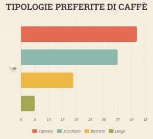 Il caffè è inoltre apprezzato per il suo effetto rigenerante soprattutto durante la colazione e dopo la pausa pranzo, quando la lucidità viene meno, ed ecco di seguito le tipologie più consumate: